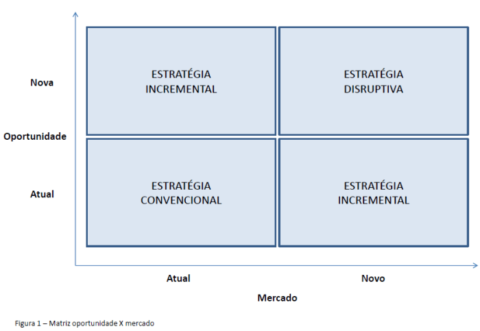 As alternativas estratégicas mencionadas são apresentadas na Matriz Oportunidade X Mercado na Figura 1.
