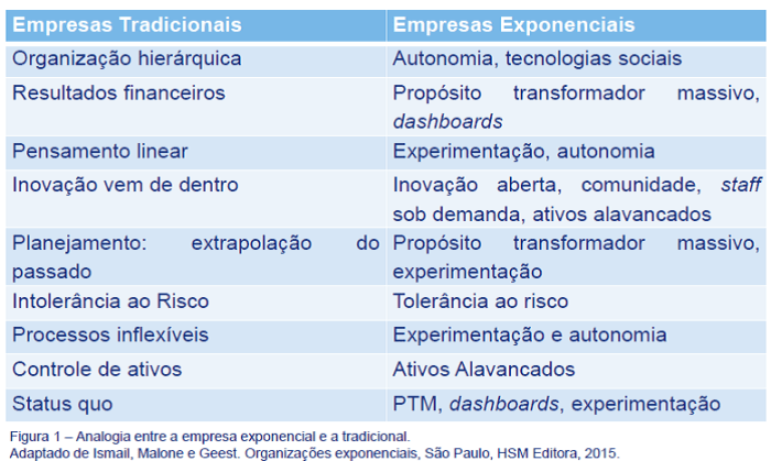 A Figura 1 ilustra as principais diferenças entre uma empresa tradicional e uma empresa exponencial.