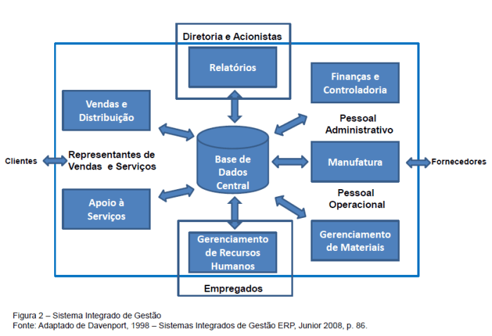 O sistema integrado de gestão (ERP) pode ser conceituado como um sistema que possibilita integrar as informações das diversas unidades de uma empresa utilizando o conceito de base de dados única, permitindo a melhoria contínua dos processos e atendendo a necessidades de informações confiáveis e em tempo real.