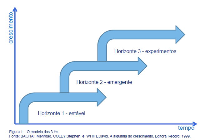 O Modelo dos 3Hs, três horizontes, descreve uma estrutura desenvolvida, como o nome sugere, a partir de 3 horizontes, resultantes de um estudo realizado sobre como as empresas sustentam o crescimento a partir do gerenciamento da performance enquanto as oportunidades futuras são maximizadas. É um modelo útil, sobretudo, em momentos de grande incerteza.