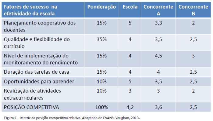 A Figura 1 ilustra a matriz da posição competitiva aplicada em uma escola
