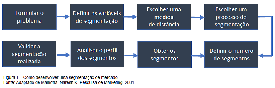 A Figura 1 ilustra passo a passo as principais etapas de um processo de segmentação de mercado utilizando a análise de conglomerados.