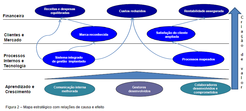 Na Figura 1 utilizou-se: financeira, clientes e mercado, processos internos e tecnologia e aprendizado e crescimento.