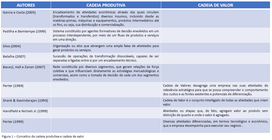 A Figura 1 apresenta algumas definições sobre cadeia produtiva e cadeia de valor.