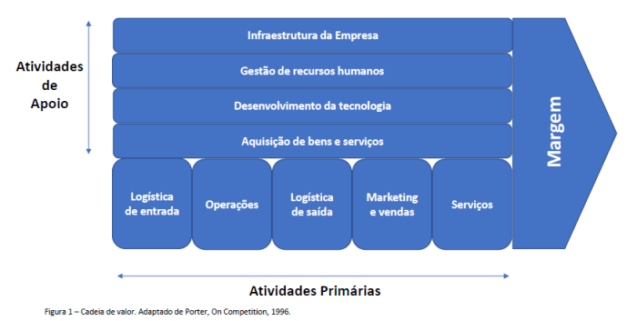 A cadeia de valor é composta por atividades primárias e atividades de apoio.