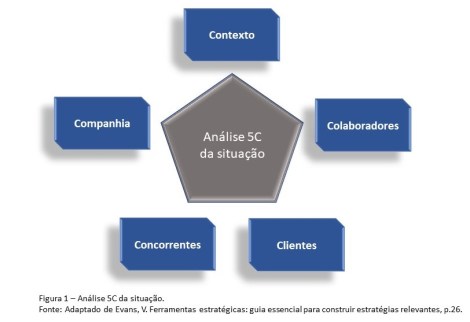 Na análise o ambiente é contemplado a partir de 5 vetores: contexto, colaboradores, clientes, concorrentes e companhia (empresa).