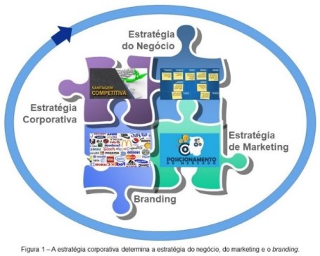 Ou seja, o que está no centro da estratégia corporativa é a vantagem competitiva, da mesma forma que o centro da estratégia do negócio é o modelo de negócio, o centro da estratégia de marketing é o posicionamento do qual o branding é elo fundamental.