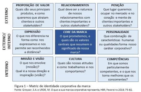 Para auxiliar no gerenciamento da identidade corporativa Greyser e Urde propõem um modelo baseado em nove dimensões inter-relacionadas; proposição de valor, relacionamentos, posição, expressão, core da marca, personalidade, missão e visão, cultura e competências, que auxiliam no desenvolvimento de uma marca corporativa mais forte considerando elementos externos, elementos que alinham aspectos internos e externos e elementos internos.
