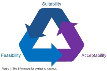 The SFA model, as I usually refer to it, looks at Johnson, Scholes and Whittington’s three “success criteria”: suitability, feasibility and acceptability (See Figure 1).