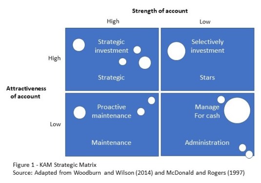 To assist in the management of strategic accounts a company can use the KAM Strategy Matrix to compare key accounts (see Figure 1).